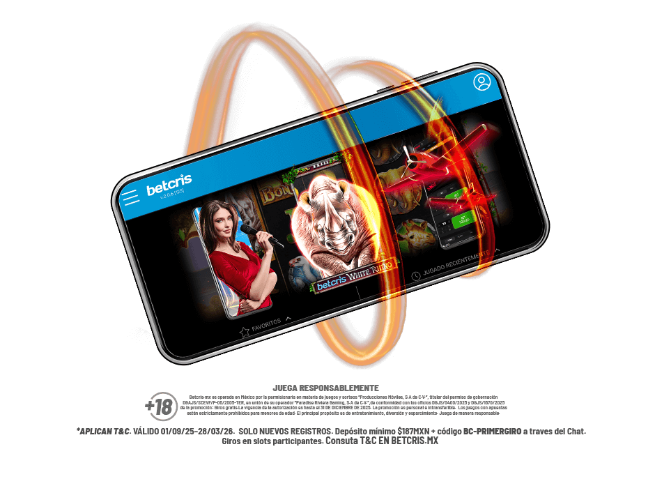 Betcris.mx es operada en México por la permisionaria en materia de juegos y sorteos “Producciones Móviles, S.A de C.V.”, titular del permiso de gobernación DGAJS/SCEVF/P-06/2005-TER, en unión de su operador “Paradise Riviera Gaming, S.A de C.V.”, de conformidad con el oficio DGJS/405/2018. Los juegos con apuestas están estrictamente prohibidos para menores de edad. El principal propósito es de entretenimiento, diversión y esparcimiento. Juega de manera responsable.